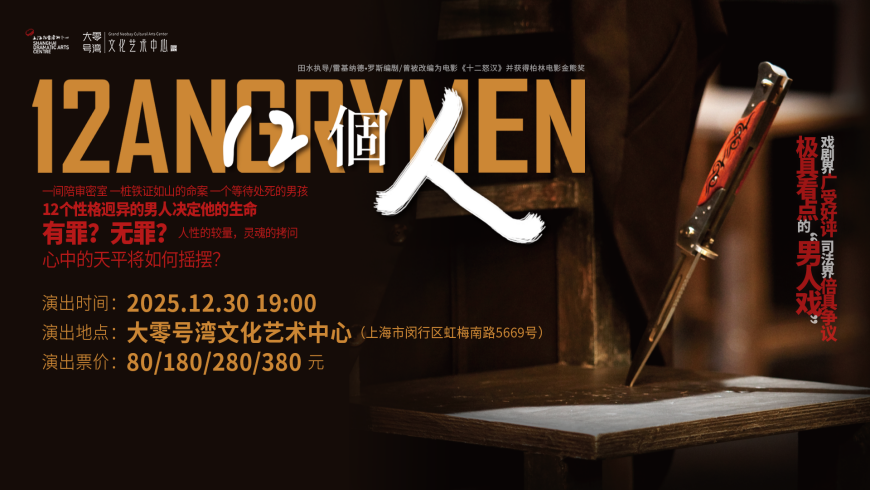 上海话剧艺术中心作为艺术中心的“老朋友”,继此前广受好评的《艺术》《真相》之后,三度携口碑之作归来。12月30日,《12个人》通过12位陪审员在密闭空间内的激烈辩论,展开一场关于人性、偏见与司法正义的深刻思辨。专注于悬疑喜剧的炬喜文化,12月13日携新作《升棺发财》重返大零号湾文化艺术中心。该剧入选上海国际喜剧节,以天马行空的想象力与诙谐犀利的台词,展现本土原创的新锐活力。同样入选上海国际喜剧节的墨西哥互动式婚礼戏剧《也许,也许,也许》以独特的互动体验打破文化隔阂。